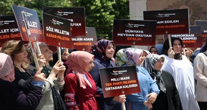 AK Parti Sivas İnsan Hakları Başkanı Gülseren Rüveyda Uçar, Sivas Cumhuriyet Meydanı'nda toplanan AK Partililer adına basın açıklaması metnini okudu.