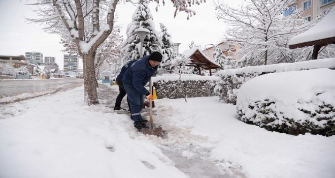 Pursaklar Belediyesi ekipleri de kar yağışından dolayı olumsuzluklar yaşanmaması için ilçede tuzlama ve kar küreme çalışmalarına devam ediyor.