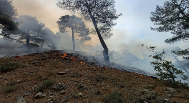 Gece boyu soğutma işlemlerinin devam ettiği yangın bölgesinde şiddetli rüzgar çalışmaları zorlaştırıyor.