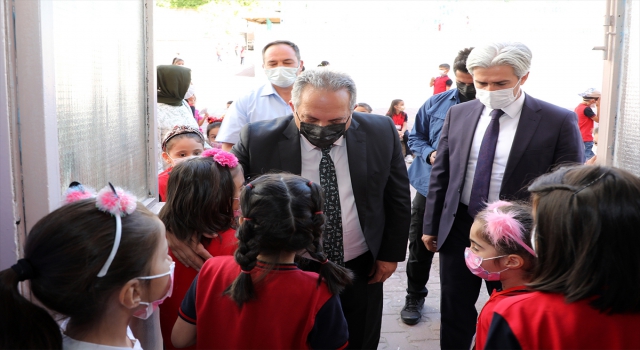 Okul müdürü Murat Kumral tarafından karşılanan Yalçın ve Elmalı, uzun süre salgın nedeniyle ara verilmek zorunda kalınan eğitimin ilk gününde öğrencilerle bahçede sohbet ederek heyecanlarına ortak oldu.