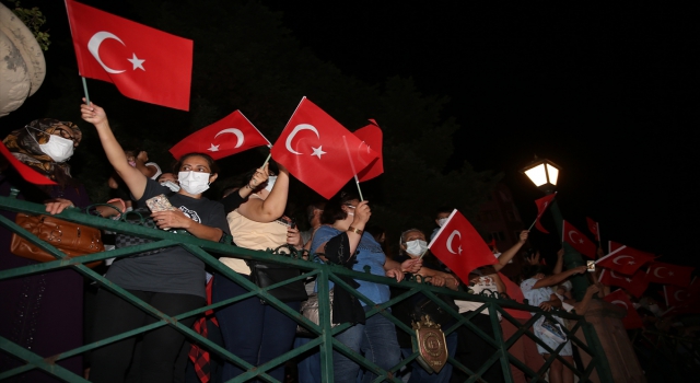 Kent merkezinden geçen Porsuk Çayı'nda botlarda yapılan fener alayında bayrak ve meşale taşıyan gençler, "Ne mutlu Türk'üm diyene" şeklinde slogan attı.