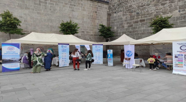 Büyükşehir Belediyesinden yapılan yazılı açıklamaya göre, öğrenciler için tarihi Kayseri Kalesi içerisinde kurulan çadırlarda, rehber öğretmenleri tarafından tercih desteği sağlandı.