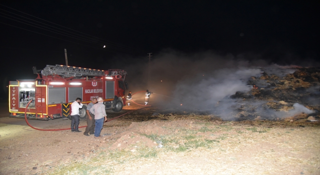 Halim Şenses Mahallesi Harmanyeri mevkisinde Sefa Keleşe ait açık alanda bulunan saman balyaları, henüz belirlenemeyen nedenle yanmaya başladı.