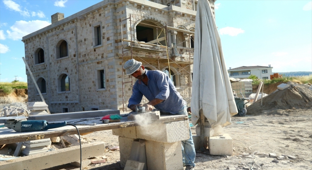 NEVŞEHİR (AA) BEHÇET ALKAN Nevşehir'de taş ustası Erkan Gür'ün Kapadokya bölgesine özgü tüf kayaların üzerine işlediği çeşitli resim ve figürler, turistik tesislerin duvarlarını süslüyor.