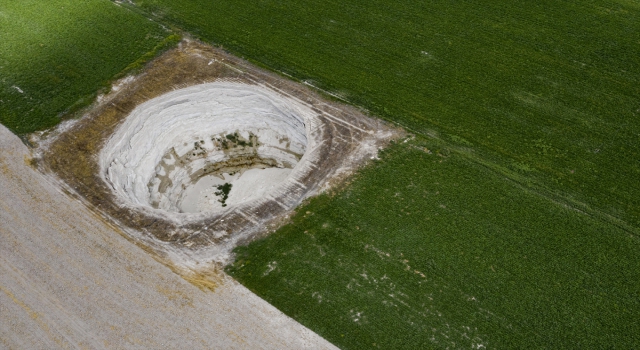 Binden fazla irili ufaklı obruğun bulunduğu Konya Ovası'ndaki dairesel oluşumlar, drone ile görüntülendi. İlçenin kuzeybatısında yer alan Çıralı Obruğu, yaklaşık 250 metre çapı ve 125 metre derinliği ile ön plana çıkıyor.