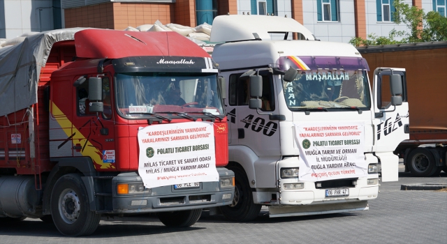Yardımların bulunduğu tırlar, düzenlenen törenle Muğla'daki yangında zarar görenlere ulaştırılması için uğurlandı.
