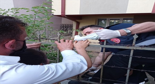 Olay yerine gelen itfaiye ekibi, çocuğun demir korkuluklara saplanan elini kurtarmayı başaramayınca demirleri kesti.