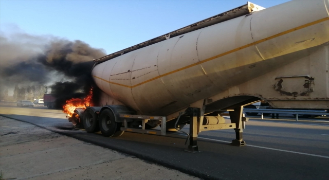 SİVAS (AA) Sivas'ın Akıncılar ilçesinde seyir halindeki çimento mikserinin lastiklerinde çıkan yangın söndürüldü.