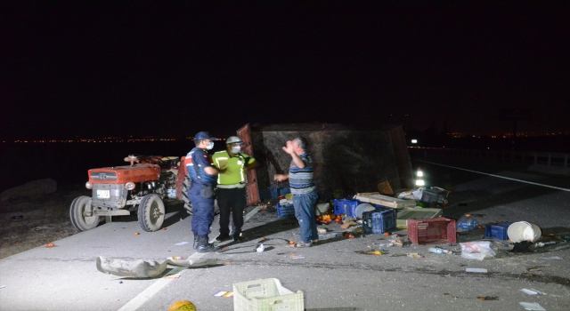 Alınan bilgiye göre, sürücüsü öğrenilemeyen 64 AAP 590 plakalı otomobil, aramanMersin karayolunun 10'uncu kilometresinde, Duran Aslan idaresindeki 70 AS 317 plakalı traktörün römorkuna arkadan çarptı.