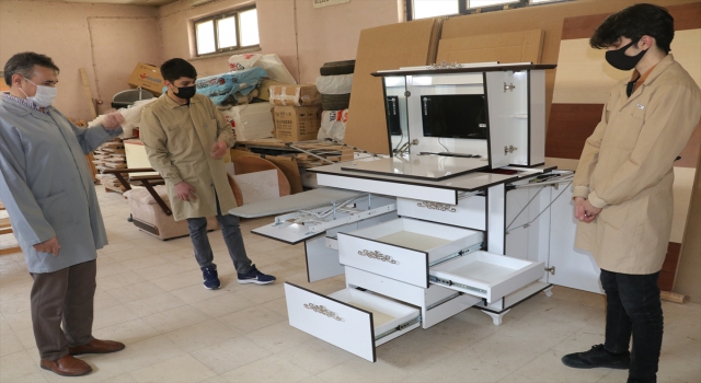 Okul araç gereçlerinin yanında öğrencilerle birlikte çeşitli mobilya tasarımları da yaptıklarına değinen Güngör, "Akıllı şifonyer, akıllı mutfak dolabı, ağlama sesine duyarlı sallanan beşik, çok kullanımlık sehpa, taşınabilir portatif piknik masası gibi çok çeşitli mobilya üretimlerimiz bulunmaktadır. Bu ürünleri de yine okulumuzun döner sermayesinden satışa sunuyor ve sipariş alabiliyoruz." diye konuştu.