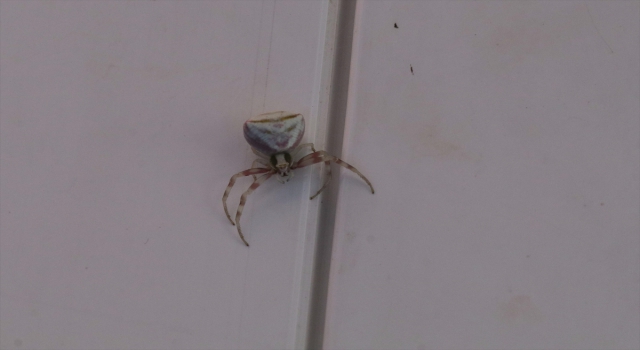 Şeyh Ahmet Efendi Mahallesi'nde yaşayan Aziz Ördekçi, evinin bahçesinde cep telefonu kamerasıyla görüntülediği örümceğin, internette yaptığı araştırmada, köşeli yengeç örümceği olduğunu öğrendi.
