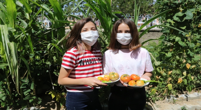 Okul bahçesinde öğretmenler ve görevliler tarafından ekilen sebzeleri sulayan, kümesteki tavukları besleyen öğrenciler, bahçede yetiştirdikleri domates, salatalık, biberi toplamanın mutluluğunu yaşadı.