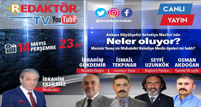 Moderatörlüğünü usta televizyoncu İbrahim Eksilmez'in yaptığı programda, Redaktör Haber Dergisi imtiyaz sahibi İbrahim Gökdemir, Başkent Postası imtiyaz sahibi Seyfi Uzunkök, Gazete ilk sayfa muhabiri Osman Akdoğan ve Gazeteci-Yazar İsmail Tekpınar Ankara Büyükşehir Belediyesinde yaşanan tartışmaları yorumladılar...