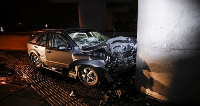 - Kontrolden çıkan otomobil üst geçidin ayağına çarptı