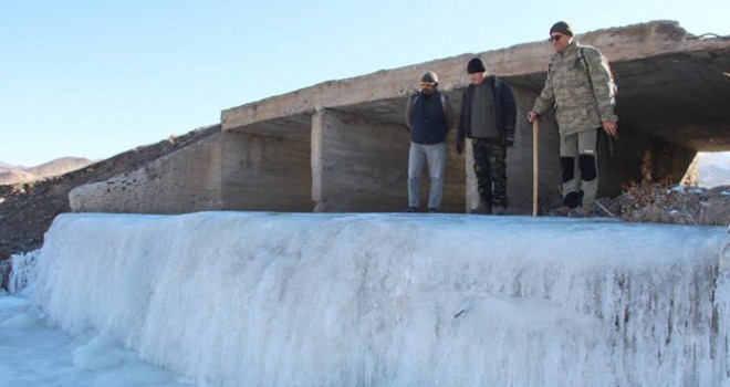 Doğa severler tamamen buz tutan deredeki buzu baltayla kırarak doğadaki hayvanlar su içebilsin diye suyun dışarı akmasını sağladılar.