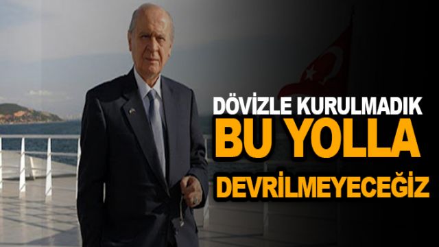 Döviz kurundaki hızlı yükselişi değerlendiren MHP Genel Başkanı Bahçeli, "Döviz bombasına, faiz-rant çıkarlarına eyvallah demeyiz. Döviz kuruyla kurulmadık, bu yolla devrilmeyeceğiz." açıklamalarında bulundu.
