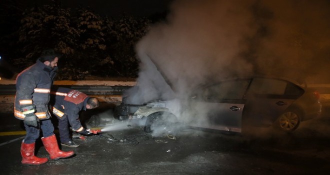 Ankara'da sürücüsünün, bir arkadaşının galerisinden ödünç aldığı otomobil çıkan yangında kullanılamaz hale geldi.
