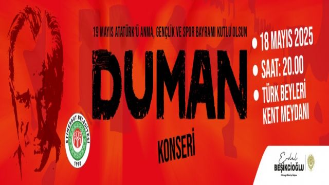 Ankara’nın Etimesgut ilçesi, 19 Mayıs Atatürk’ü Anma, Gençlik ve Spor Bayramı’nı bu yıl büyük bir coşkuyla kutlamaya hazırlanıyor. Etimesgut Belediyesi’nin düzenlediği etkinlikler kapsamında, Türk rock müziğinin efsane grubu Duman, 18 Mayıs Cumartesi akşamı saat 20.30’da Türk Beyleri Kent Meydanı’nda sahne alacak.