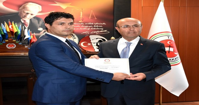 Kırşehir Adliyesinde düzenlenen törende Merkez Seçim Kurulu Başkanı Hüseyin Sabuncuoğlu, 31 Mart Mahalli İdareler Genel Seçimleri'nde belediye başkanı seçilen CHP'li Ekicioğlu'na mazbatasını verdi.