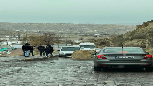 - Nevşehir'in Göreme beldesinde yamaçtan yola yuvarlanan kaya parçası trafiği aksattı.