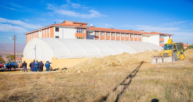 Elmadağ Belediyesi yanında bulunan, Ertuğrul Gazi kapalı spor kompleksi, Gençlik ve Spor İl Müdürlüğü ile yapılan görüşmeler neticesinde aynı alana yüzme havuzu kompleksi yapılmasının planlanması üzerine, İlçemize yeni yapılan ve 341 öğrenciye eğitim veren Gazi Şahin Anadolu Lisesinin bahçesine demonte edildi.