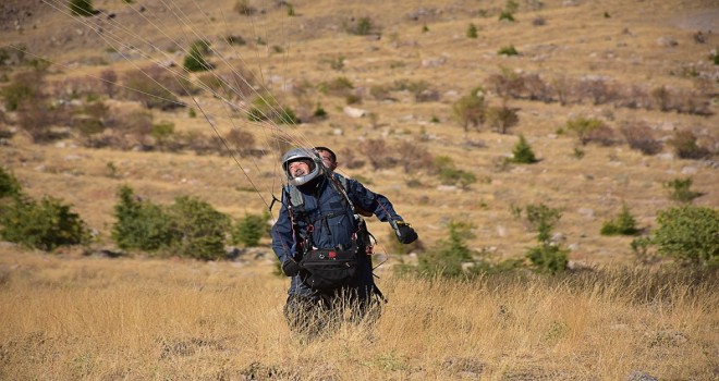 Konya'da yaşayan 67 yaşındaki mimar Hüseyin Çevik, 10 yıl önce gösteri uçuşu yaparken geçirdiği kaza sonucu 9 parmağını kaybetmesine rağmen yamaç paraşütü tutkusundan vazgeçmiyor.