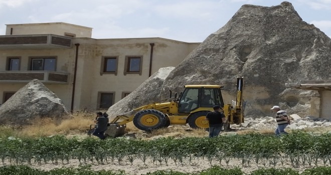 Ekipler, öğleden sonra ise bir otel inşaatı ve konutun peribacasına yakın olduğu belirlenen bazı bölümlerini yıktı.