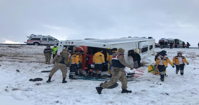 Personelle birlikte 25 kişinin bulunduğu otobüsteki 15 kişi yaralandı. AFAD, UMKE ve 112 Acil Servis ekipleri kazaya müdahale etti. Otobüste sıkışan 3 yolcu, AFAD ekiplerinin çalışmasıyla bulundukları yerden çıkartıldı.