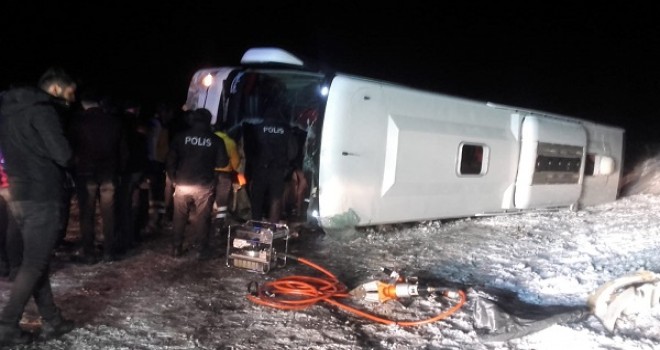 Alınan bilgiye göre, Gürkan Çelik (42) yönetimindeki Erzurum'dan Ankara'ya giden 16 ABN 467 plakalı yolcu otobüsü, İmranlı ilçesi Kemreli köyü mevkisinde devrildi.