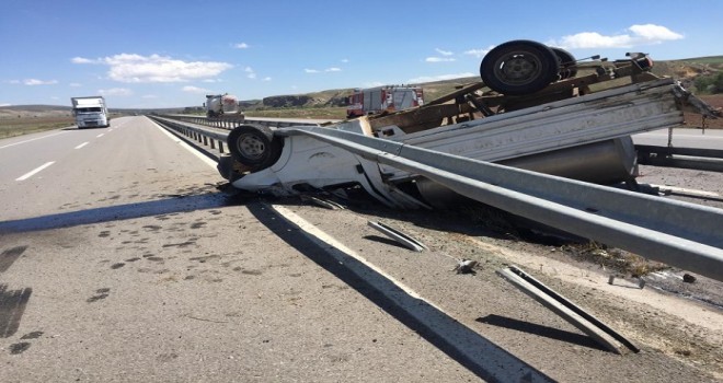 Abdullah Öztürk (40) idaresindeki 58 HH 126 plakalı süt toplama kamyoneti, Kayseri-Sivas kara yolu Elmalı köyü yakınlarında kontrolden çıkarak refüje devrildi.