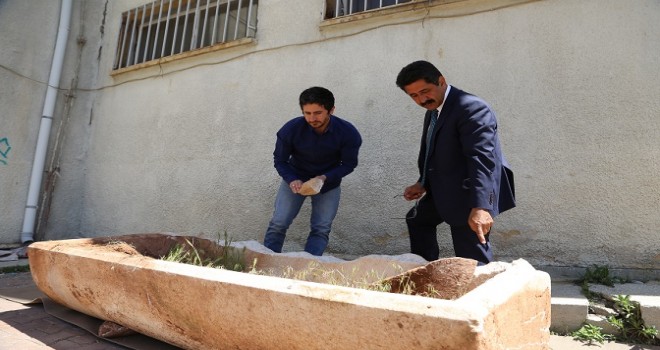 Kapağının bir bölümü kırık olan Roma dönemine ait lahit, incelenmek üzere Nevşehir Müze Müdürlüğüne götürüldü.