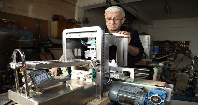 Bant üzerinde bitirilmesi gereken işleri insan eli değmeden yapan makinalar imal ettiğini aktaran Cantürk, "Şu anda el kremleri ve kolonyalar için tıpa çakma ve kapak sıkma makinası üretiyorum. Bana iş söylendikten sonra mevcut makinalarla çalışabilecek makine yapıp, entegre ediyorum." diye konuştu.
