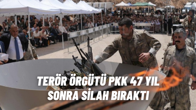 Terör örgütü PKK, silahları teslim etti. Sembolik olarak düzenlenen törende PKK'lılar silahlarının büyük bir kazanın içerisine attı. PKK'lıların silahları, kazan içerisinde yakılarak yok edildi.