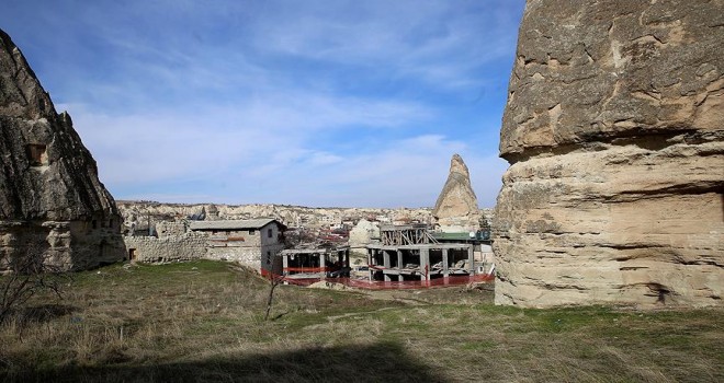 Nevşehir'in Göreme beldesinde peribacalarının bulunduğu bölgede yapılan iş yeri ve konut inşaatının yıkımı tamamlandı.