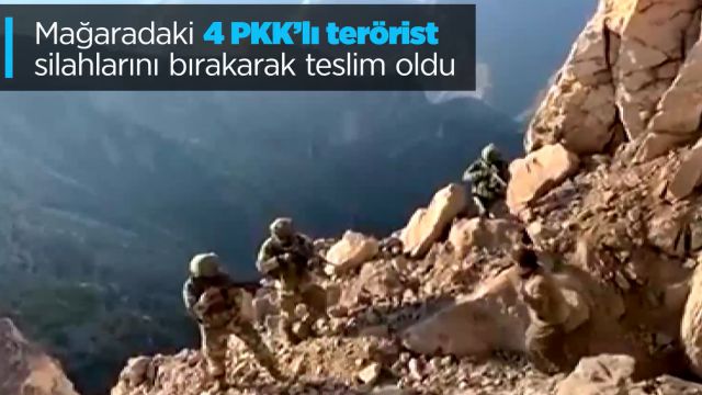Kendi güvenliklerini de sağlayan Mehmetçik, mağaradaki teröristlere "teslim ol" çağrısında bulundu. Kaçacak yerleri kalmadığını anlayan teröristler, silahlarını bırakarak teslim oldu.