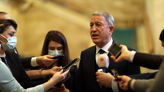 Milli Savunma Bakanı Hulusi Akar, Meclise gelişinde gazetecilerin gündeme ilişkin sorularını yanıtladı.
