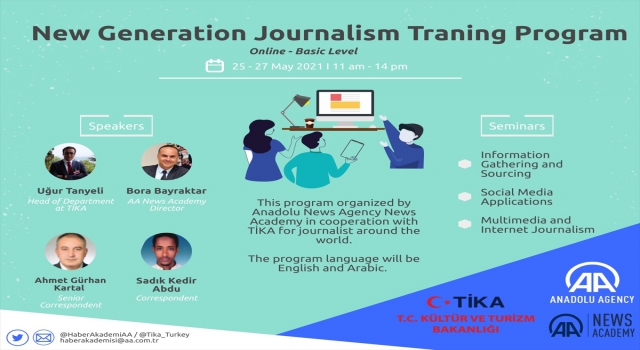 ANKARA (AA) Anadolu Ajansı (AA) ile Türk İşbirliği ve Koordinasyon Ajansı Başkanlığı (TİKA) iş birliğinde TİKA'nın Muhabir Eğitim Programı (MEP) kapsamında düzenlenen "Online Yeni Nesil Habercilik Eğitim Programı" başladı.
