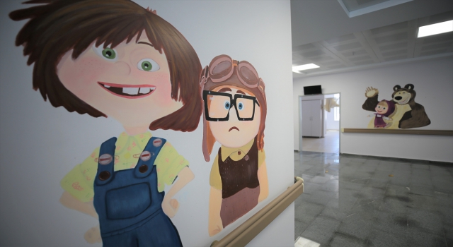 AKSARAY (AA) Aksaray Eğitim ve Araştırma hastanesinin çocuk acil, poliklinik ve yataklı servisleri ile ara koridorları, çocukların hastane korkularını yenmeleri ve eğlenceli zaman geçirmelerini sağlamak amacıyla çizgi film karakterleri ile süslendi.