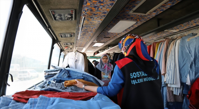 AKSARAY (AA) ZEKERİYA KARADAVUT Aksaray Belediyesinin "Sosyal Mağaza Otobüsü" Kurban Bayramı öncesinde mahalle ve köylerde çocuklar başta olmak üzere her yaştan vatandaşa giysi desteğinden saç kesimine kadar her türlü imkanı sağlıyor.