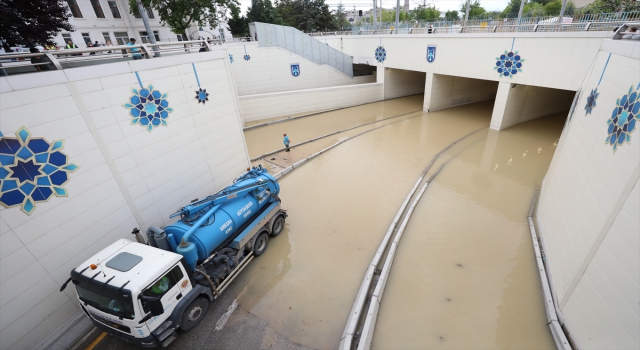 Ankara Büyükşehir Belediyesi ekipleri, biriken suyu tahliye çalışmasını sürdürüyor.
