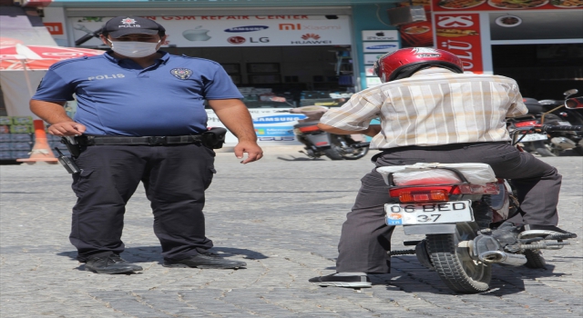 İlçe Emniyet Müdürlüğü Trafik ve Asayiş büro amirliklerinden polisler, Hanlarönü Meydanı ve çevresinde motosikletlileri durdurdu.