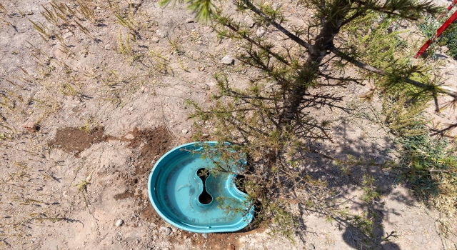 Büyükşehir Belediyesinden yapılan yazılı açıklamaya göre, fidanlara su ihtiyaçlarını toprak altında bulunan mikro gözeneklerdeki suyu kullanarak karşılamayı öğreten ve bitki destek ünitesi olan susuz bitki yetiştirme aparatı, şehrin kurak ya da yarı kurak alanlarında uygulamaya konuldu.