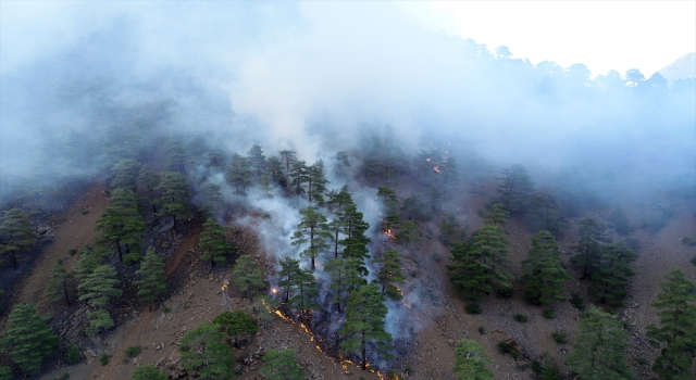 KAYSERİ (AA) Kayseri'nin Yahyalı ilçesi sınırlarındaki Aladağlar Milli Parkı'nda öğle saatlerinde çıkan yangına müdahale çalışmaları sürüyor.