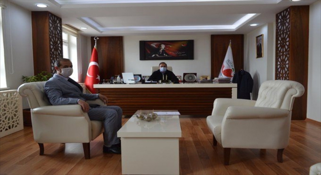Ünal'ın ilçeye veda etmesinin ardından yeni görevine başlayan Maden'i, kendisini ziyaret eden Hüyük Kaymakamı Cüneyt Demirkol da makamında kabul etti.