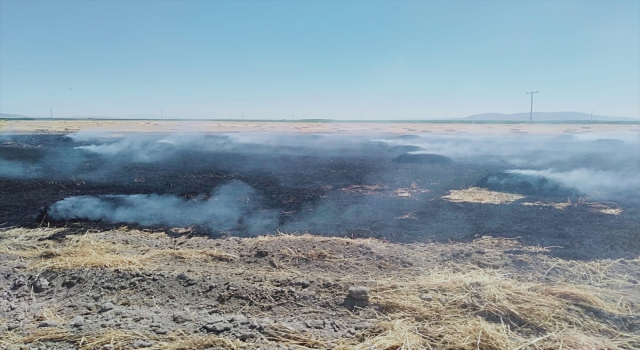 Yangında, yaklaşık 6 dönüm anız ve tarlanın içindeki 150 saman balyası yandı.