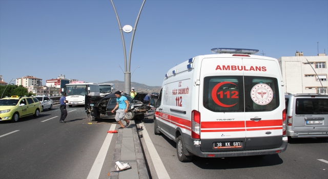 Alınan bilgiye göre, E.S. yönetimindeki 38 KH 214 plakalı otomobil, merkez Kocasinan ilçesi Kocasinan Bulvarı'ndaki üst geçitte, Ö.A'nın kullandığı 38 YZ 160 plakalı otomobille çarpıştı. Çarpışmanın etkisiyle savrulan Ö.A'nın aracı, refüjde bulunan aydınlatma direğine çarparak durabildi.