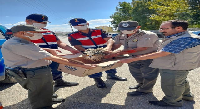 KIRŞEHİR (AA) Kırşehir'in Akpınar ilçesinde yaralı halde bulunan puhu kuşu koruma altına alındı.