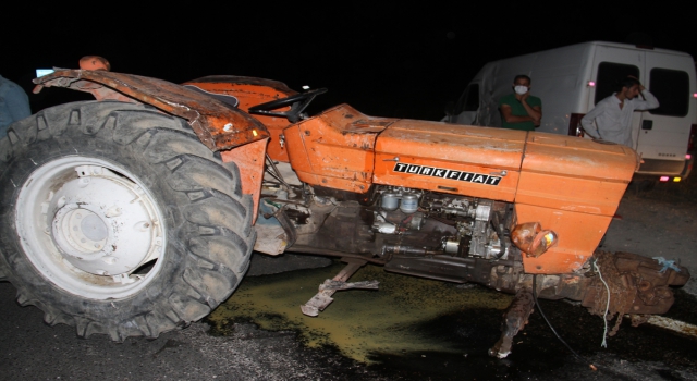 Kazada çarpışmanın şiddetiyle traktörden yola savrulan sürücü Reyhan Huğlu ve eşi Şerife Huğlu, minibüs sürücüsü Abidin Arslan ile araçta bulunan yolcu Zeynep Yeşeri yaralandı.