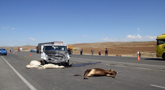 SİVAS (AA) Sivas'ın Hafik ilçesinde kamyonetin, büyükbaş ve küçükbaş hayvanların bulunduğu sürüye çarpması sonucu 9 hayvan telef oldu.