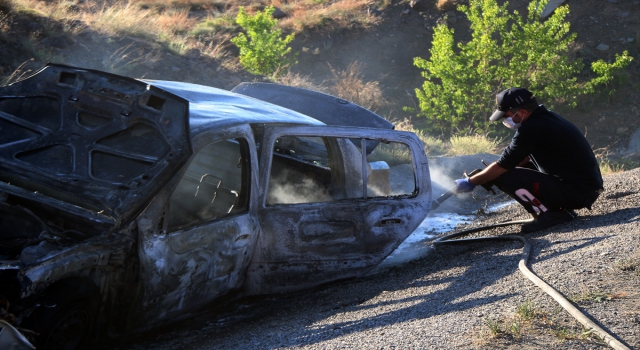 SİVAS (AA) Sivas'ın Şarkışla ilçesinde seyir halindeyken yangın çıkan otomobil kullanılamaz hale geldi.